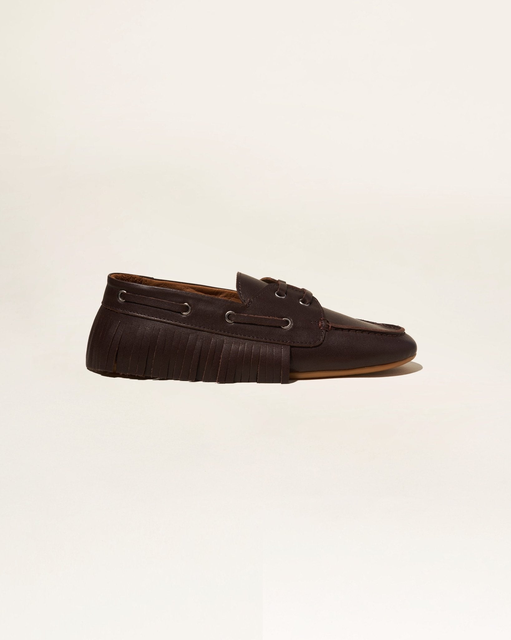 The side fringe and leather lace create a decorative detail that recalls the sporty heritage, while the rubber sole makes it perfect for every summer stroll, between docks and city.