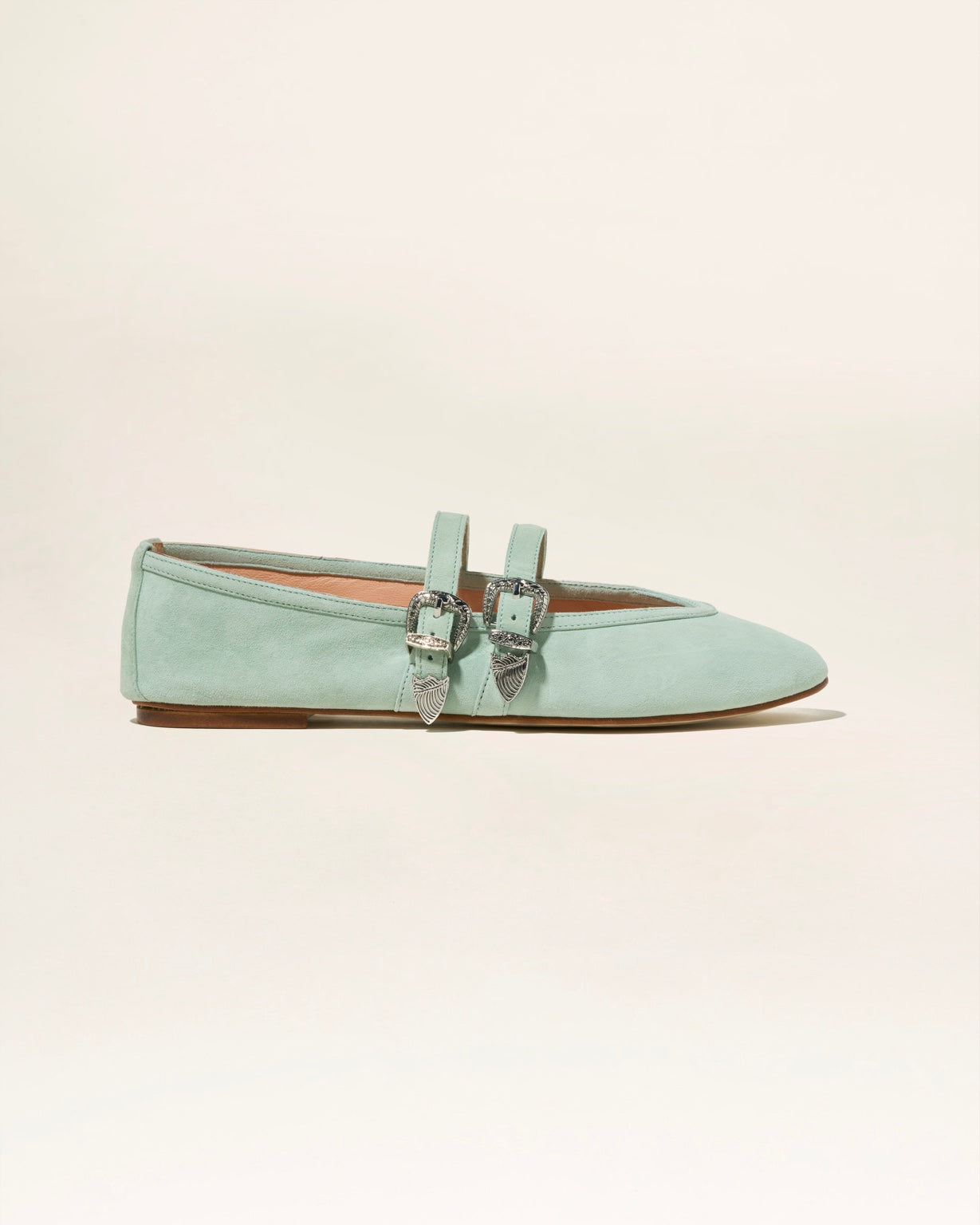 Realizzata in camoscio, con doppia fibbia decorativa e suola artigianale, è la scarpa perfetta per uno stile femminile, elegante e disinvolto.