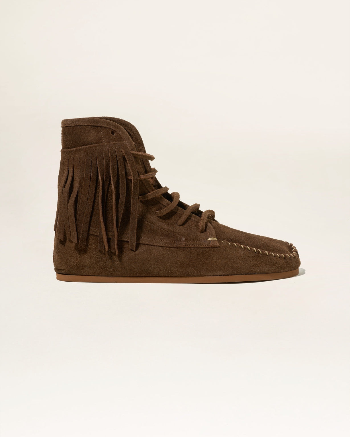 Incontra Jacqueline, lo stivaletto piatto che porta un tocco di stile bohémien al tuo stile quotidiano. Realizzato in morbida pelle scamosciata con frange giocose alla caviglia. I lacci in pelle regolabili ti permettono di personalizzare la vestibilità a tuo piacimento, rendendola tanto comoda quanto chic.