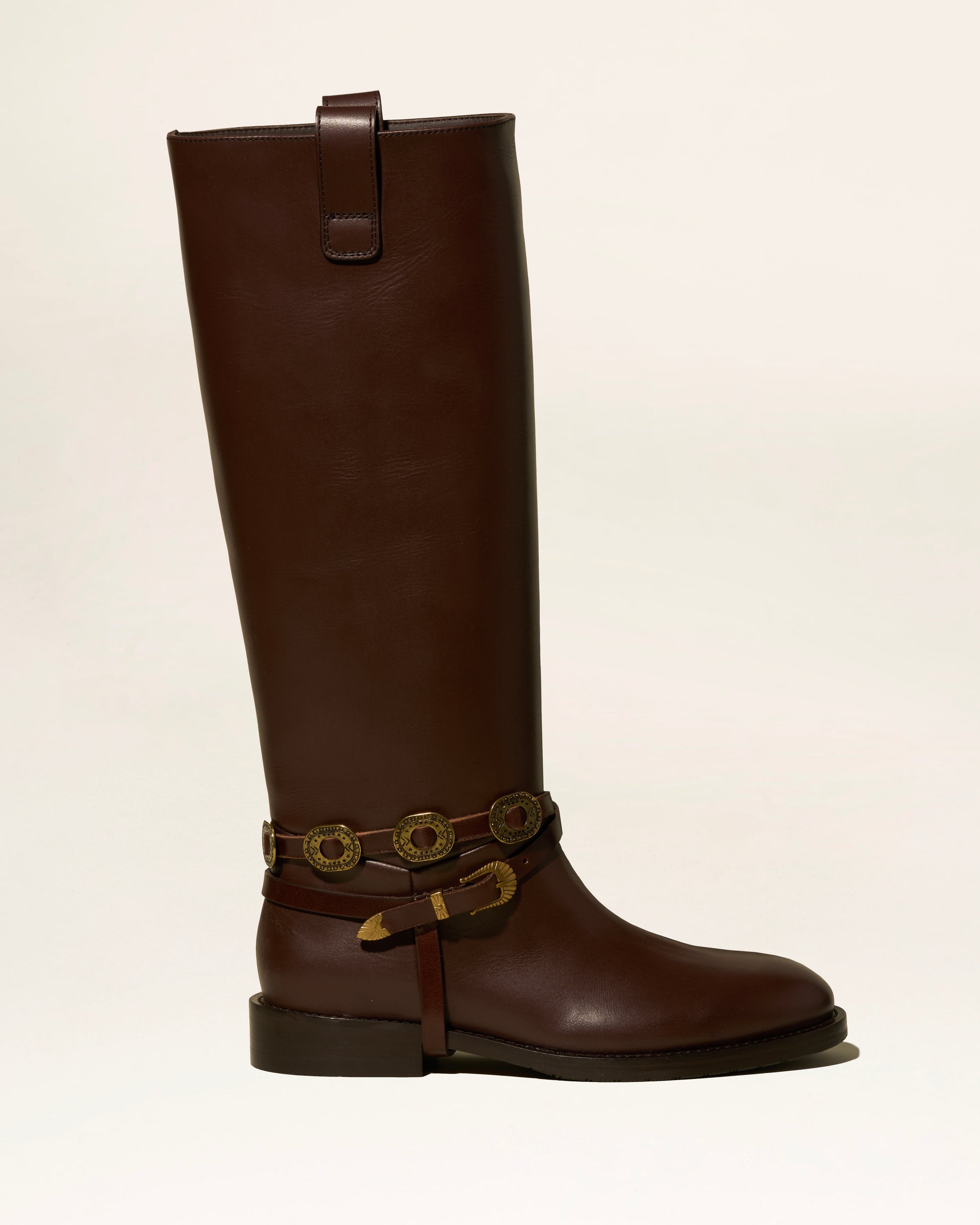 Scopri lo stivale Kate, il compagno perfetto per chi ama lo stile equestre con un tocco di versatilità. Realizzato in pelle pregiata con una gamba dritta al polpaccio, questo stivale combina eleganza senza tempo e praticità. La suola in cuoio e gomma antiscivolo garantisce stabilità su qualsiasi terreno, mentre la fibbia alla caviglia con passanti removibili ti permette di giocare con il look: indossala per un'allure più audace, oppure toglila per un'estetica classica e raffinata. Versatile, affidabile, irresistibile.