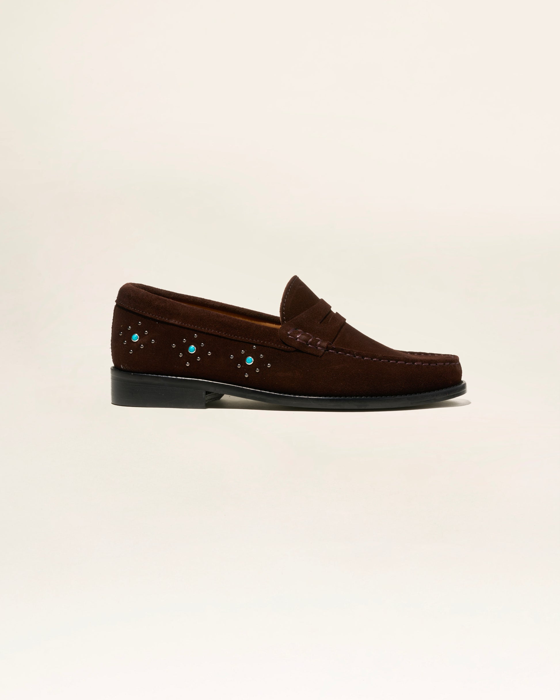 I mocassini Lily sono il perfetto mix di stile e personalità! Realizzati in pregiato camoscio, questi mocassini catturano l'attenzione con dettagli audaci: borchie scintillanti e turchesi che aggiungono un tocco bohemien al tuo look quotidiano. La suola in pelle e gomma antiscivolo garantisce comfort e stabilità, che tu stia passeggiando in città o rilassandoti con gli amici. Perfetti per chi ama osare con la moda senza compromessi sulla comodità, questi mocassini trasformano ogni outfit in un'affermazione di stile unico e consapevole.